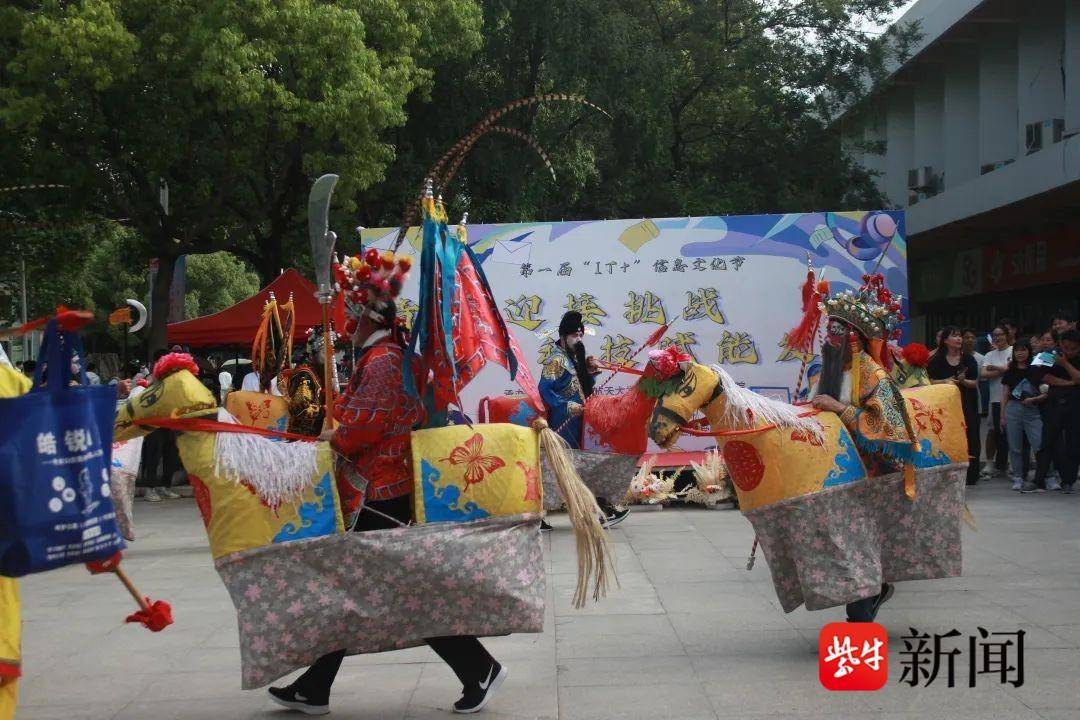 扬子晚报网5月24日讯(记者梅建明)为了传承非物质文化遗产,5月23日下午,南京市江宁区禄口街道石埝村的水荆墅马灯在南航金城学院信息文化节上首次“跳”进了高校校园。
