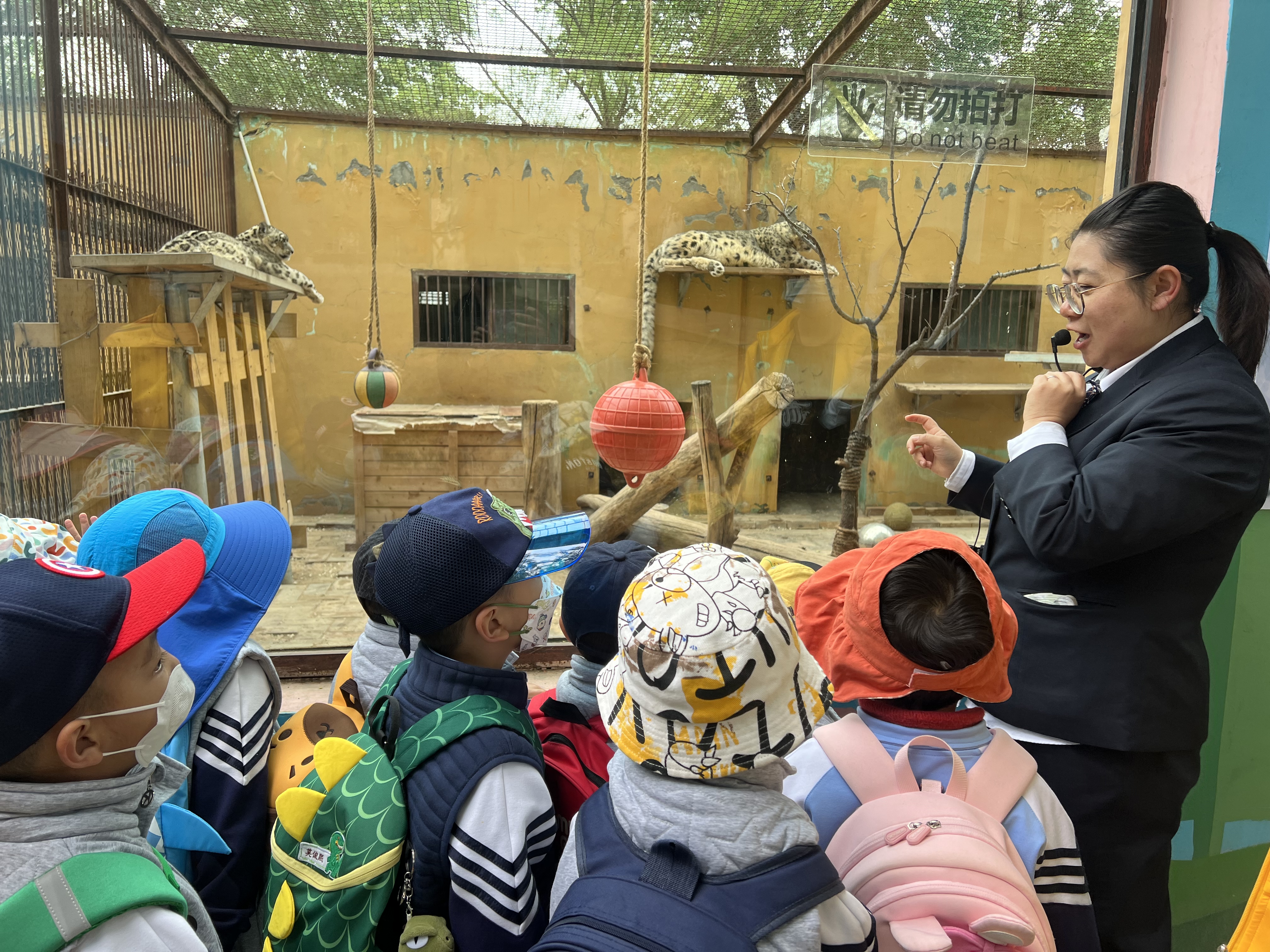 “小朋友们,你们知道雪豹和金钱豹的区别吗?”“荒漠猫是不是和家养的小猫咪很像呢?”2023年青海省科技活动周期间,青海省西宁市城北区海贝尔博艺幼稚园164名小朋友赴西宁野生动物园开展研学活动,与雪豹、荒漠猫、兔狲等高原旗舰物种近距离接触。