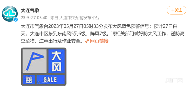 央广网大连5月27日消息(记者王松)26日,大连市防汛抗旱指挥部办公室发布《关于做好防范应对强降雨和大风天气过程的通知》,具体内容如下: