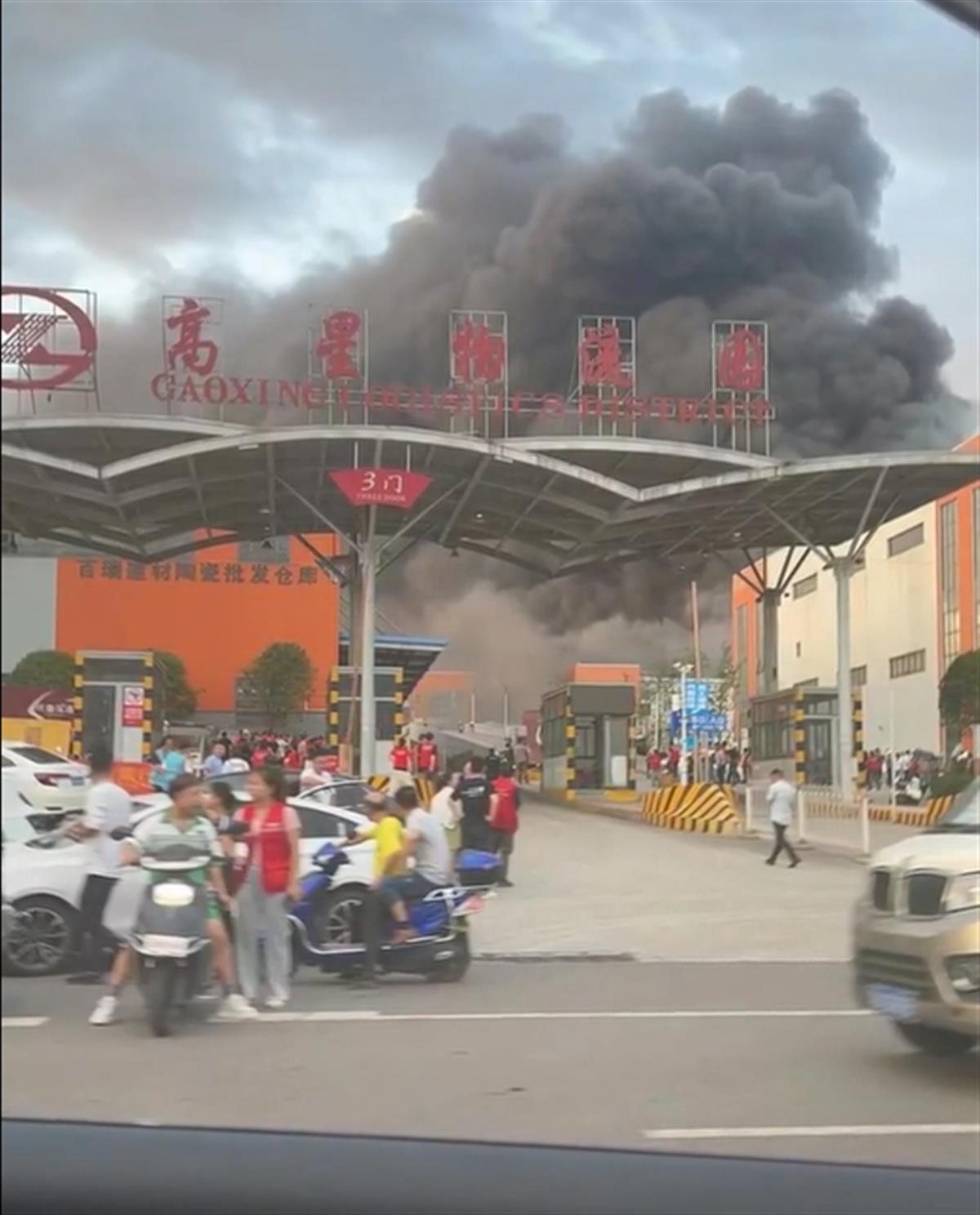 高星物流园内腾起浓烟(视频截图)
