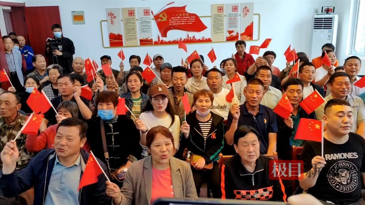 上午9时许,在江苏沛县大屯街道朱大庄村社区活动中心,航天员朱杨柱的父母、奶奶、老师以及数十名村民聚在一起,挥舞着手中鲜红的国旗,观看着火箭发射的直播,为“柱子”隔空加油。
