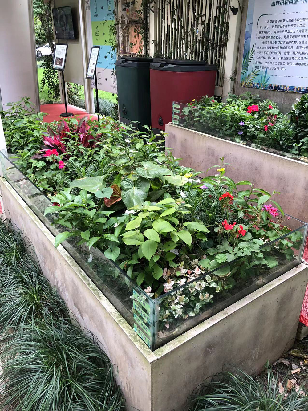 除此之外,我们小区还有发酵堆肥的设备,只要放四周就能产生肥料。现在,我们每天将60L的湿垃圾收集起来进行发酵堆肥,每天能收集20L的生态肥,没什么气味,肥力也足,所以我们小区的绿植长得也很好。