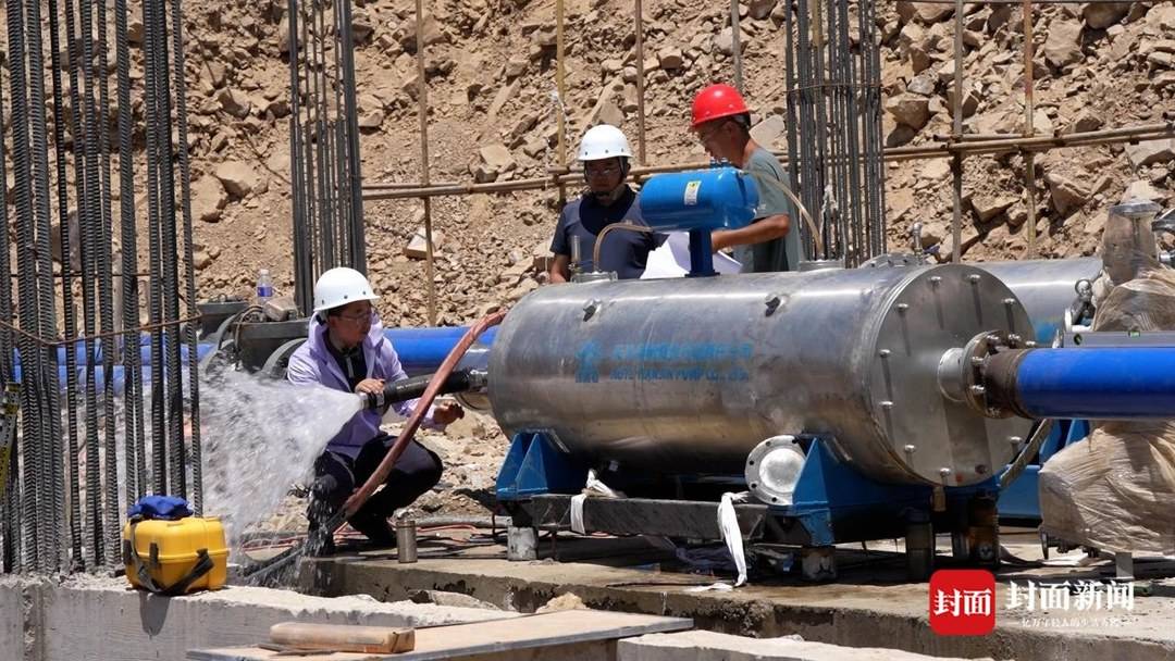 金沙江大峡谷太阳能提水泵站建设现场。图据“这里仁和”