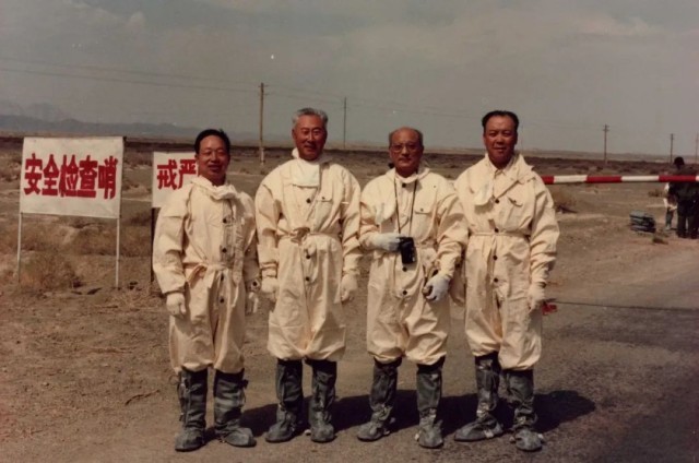 一次核爆炸试验后,林俊德(左一)和参试人员从试验场区完成取样任务后合影留念。新华社发