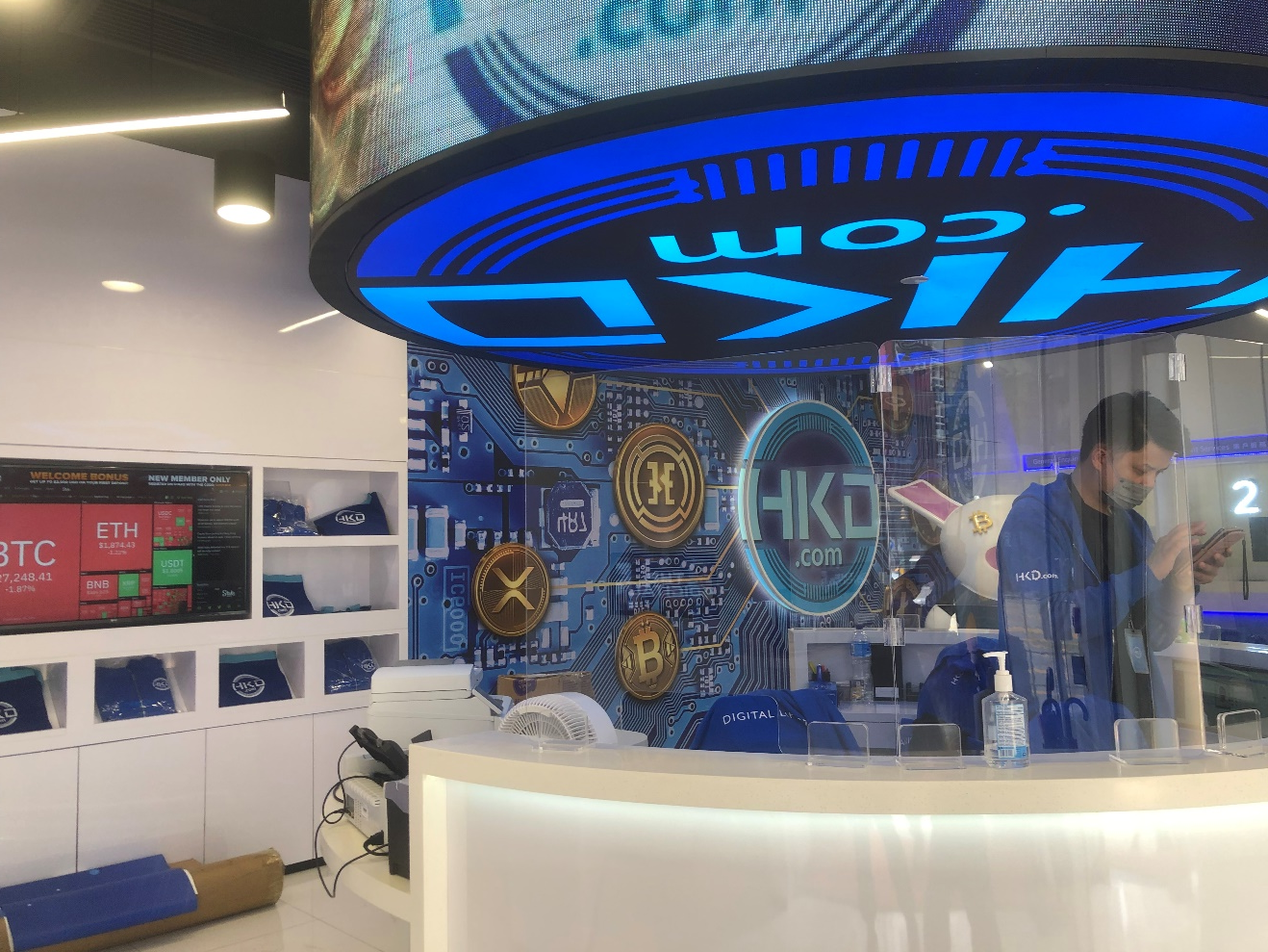 进入位于油麻地的香港数字资产交易所实体交易中心,给人的第一印象更像是一个“加密货币银行”。一楼配备了咨询台、柜台窗口和加密货币ATM机。交易所的二楼是VIP服务区、贵宾厅和数字资产教学区,三楼是数字资产办公室和实验室,仅一楼对外开放。