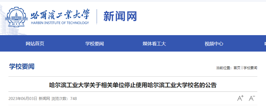 据哈尔滨工业大学官方网站消息6月3日,哈尔滨工业大学发布关于相关单位停止使用哈尔滨工业大学校名的公告,要求哈工大机器人义乌人工智能研究院、哈工大机器人(合肥)国际创新研究院等11家单位停止使用“哈工大”、“哈尔滨工业大学”字样作为单位名称。