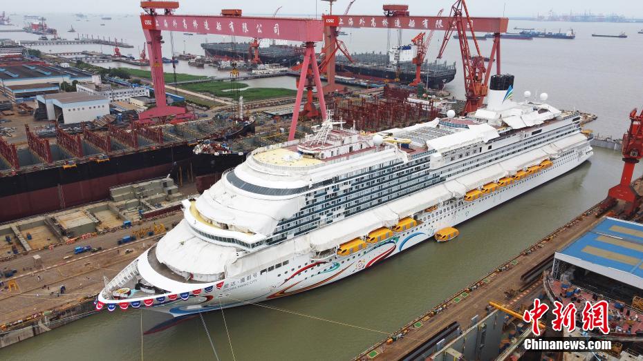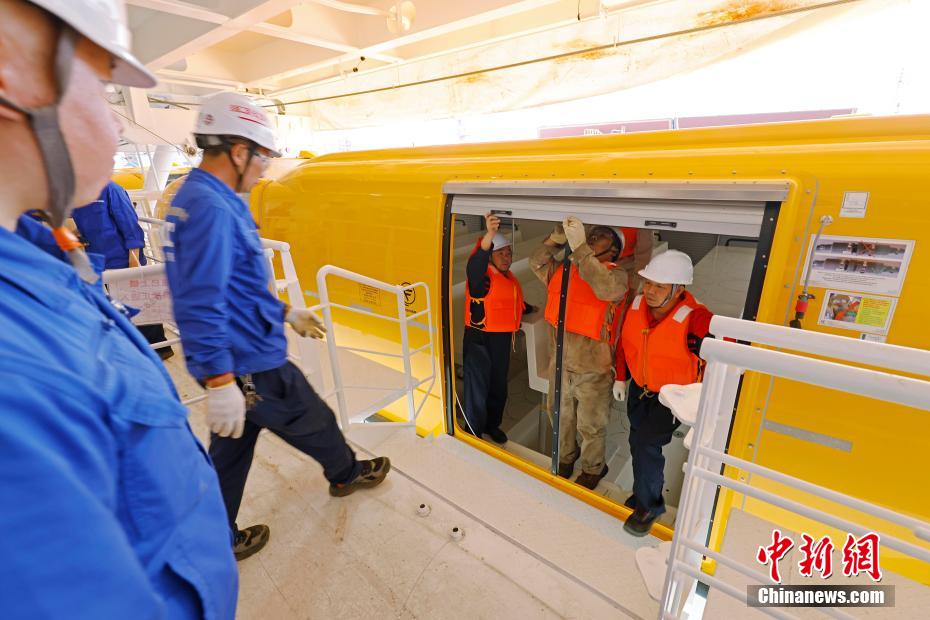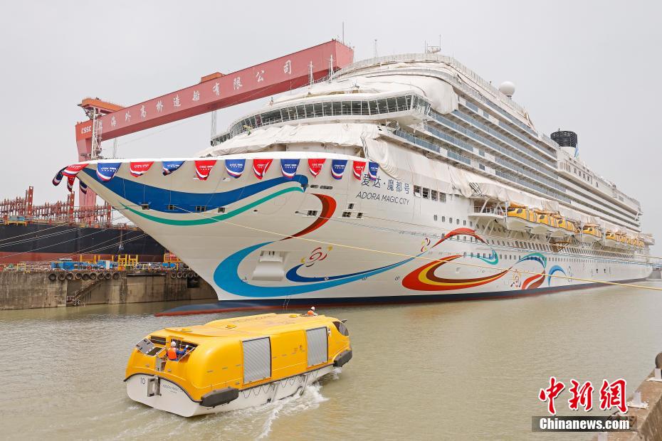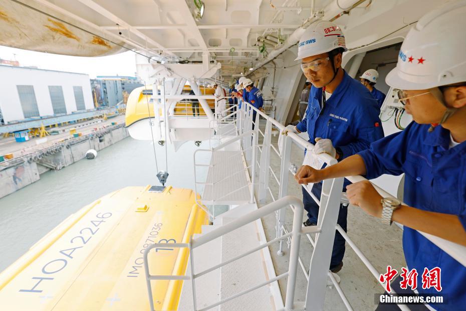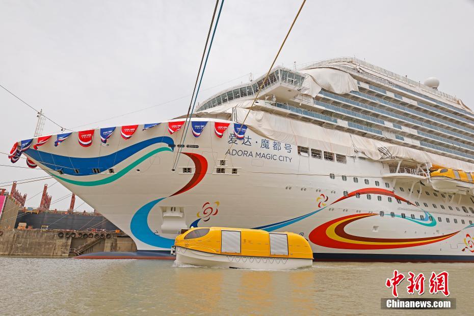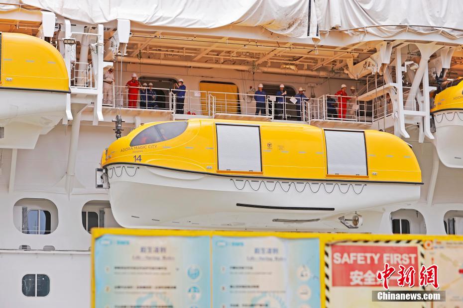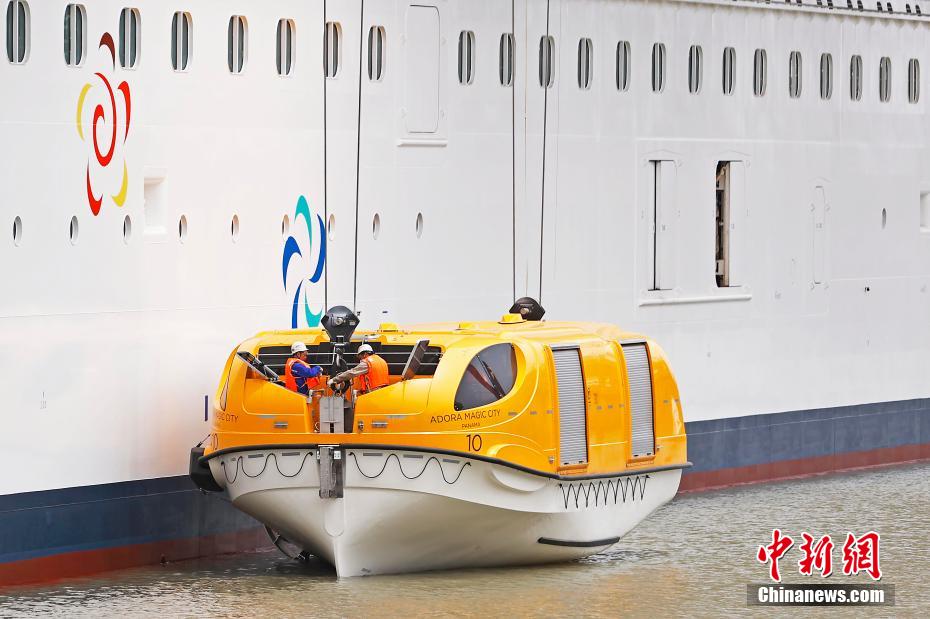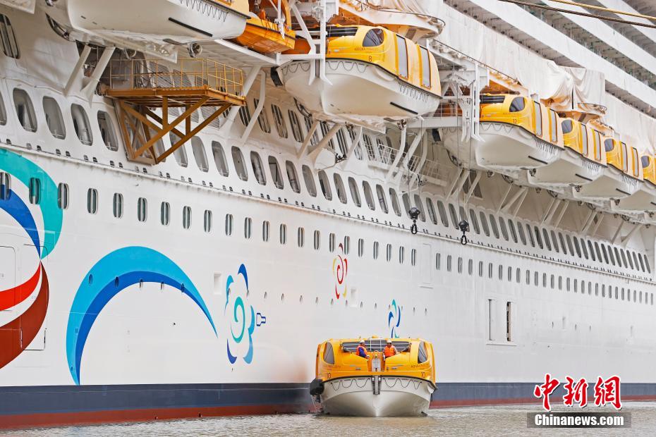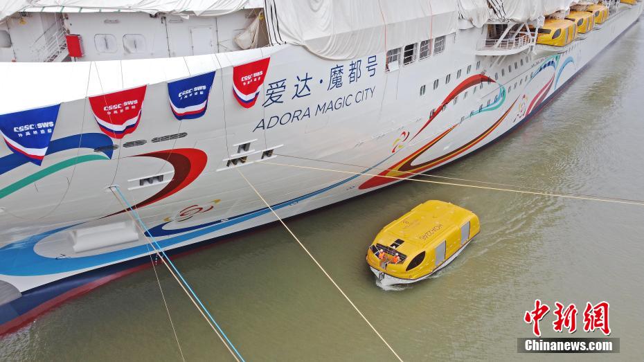 中国首艘国产大型邮轮“爱达·魔都号”开始进行救生艇脱钩巡游试验。