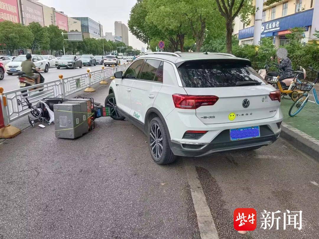 江宁开发区民警赶至现场,发现一辆小轿车停在马路边,车头处还有一辆电动自行车倒在地上。