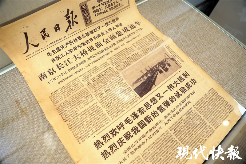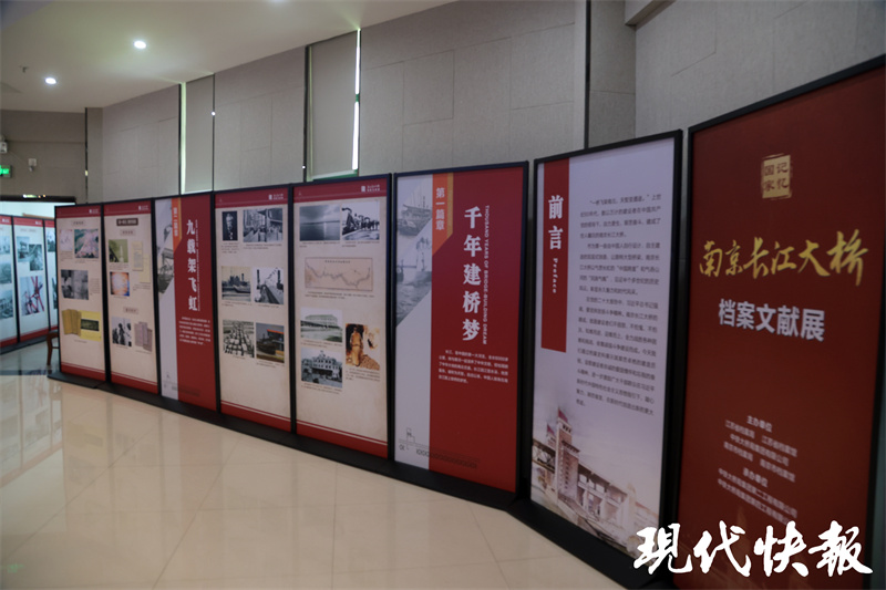 活动当天的南京会场上,“南京长江大桥档案文献展”图文并茂,将大桥的故事娓娓道来。展览通过一张张老地图、老照片,呈现了南京长江大桥的“成长记”:从决策、勘测设计、方案选择,到建设施工,再到庆祝通车时万人空巷的盛况。