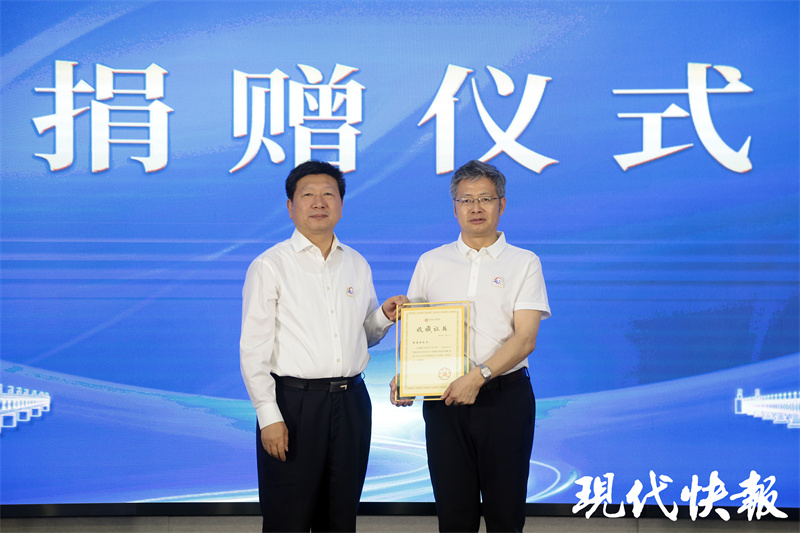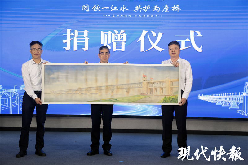此次活动现场,中铁大桥局集团向江苏省档案馆、南京市档案馆捐赠了南京长江大桥设计图长卷和建设声像资料,江苏省和南京市档案馆回赠了《南京长江大桥档案》《南京长江大桥故事》《我们的大桥》等系列书籍。南京信息工程大学周显信教授向江苏省档案馆捐赠《咱们的“争气桥”——南京长江大桥建造者访谈实录》及口述史采集数据。