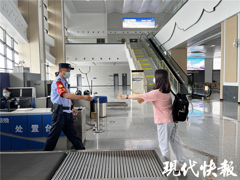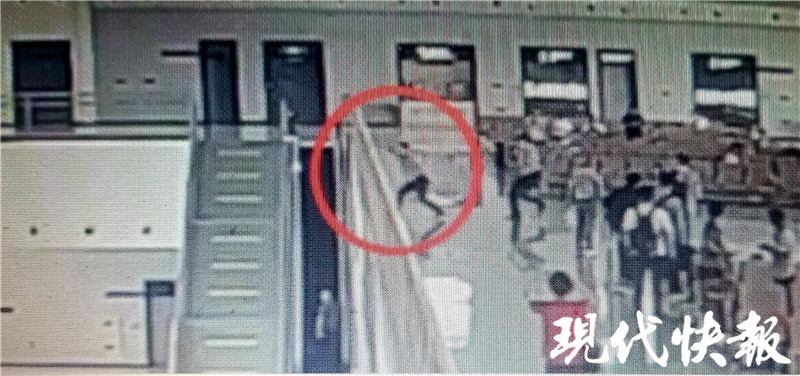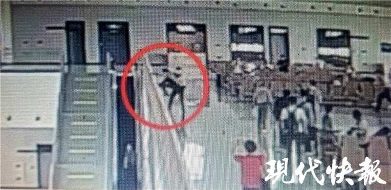 现代快报记者了解到,事情发生在6月1日14时44分,当天G1849次列车即将停靠在新沂南站,在二层候车室检票口,旅客们依次检票准备上车。就在这时,一名男子扔下背包,情绪显得非常激动,朝着二层候车室的护栏处跑去。