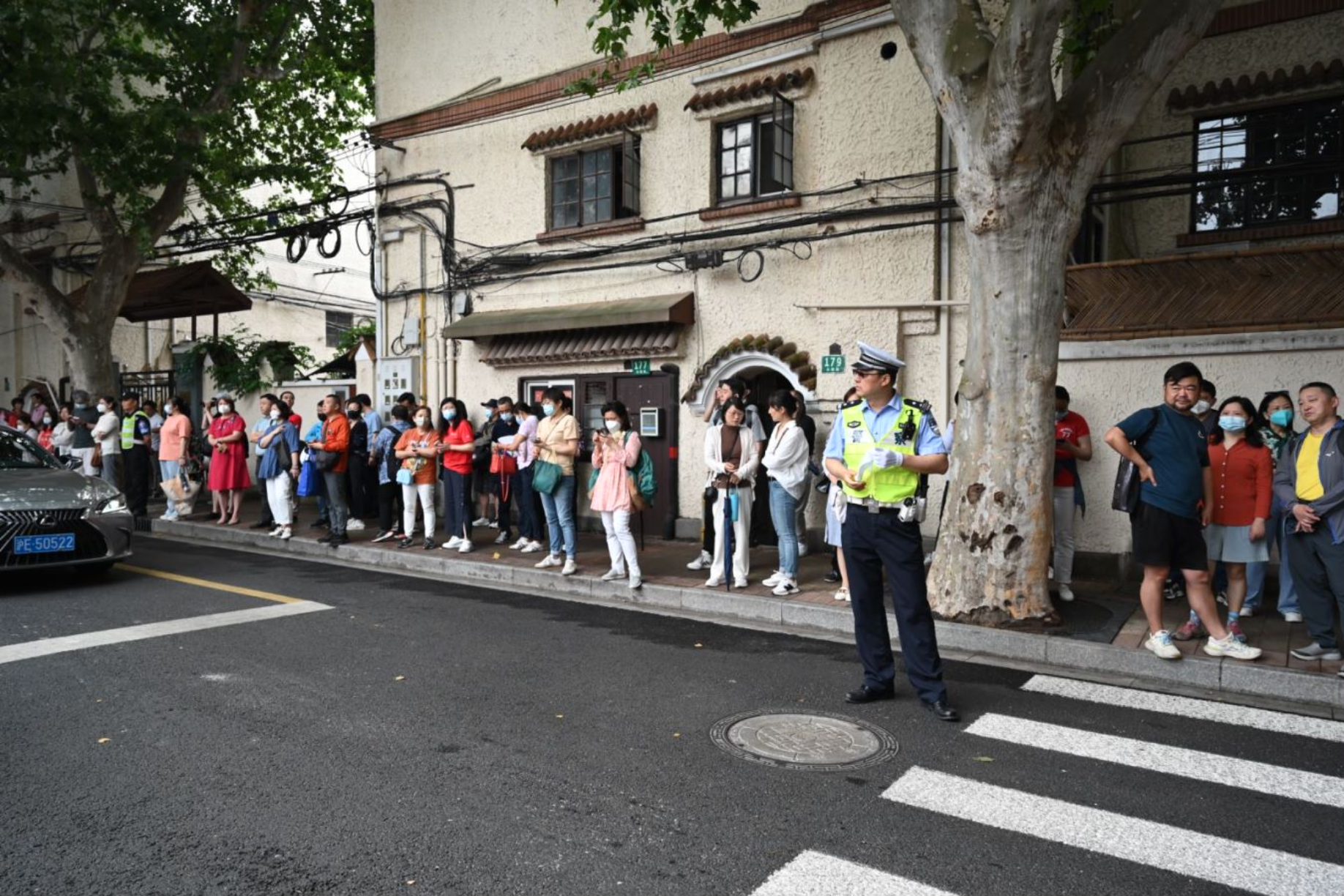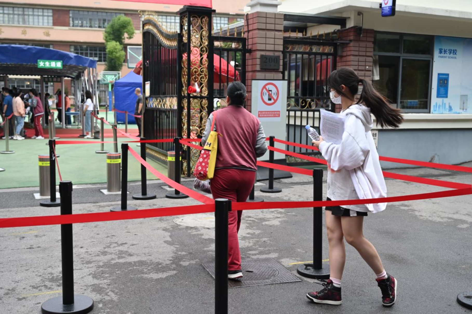 2023年6月7日,上海市第二中学,考生有序进场,考点外送考的家长群。澎湃新闻记者吴栋图