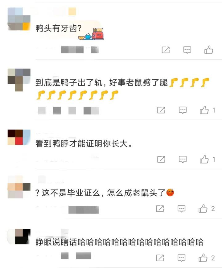 网友对此似乎并不买账,“指鼠为鸭”、“鸭脖怎么长了牙”.....