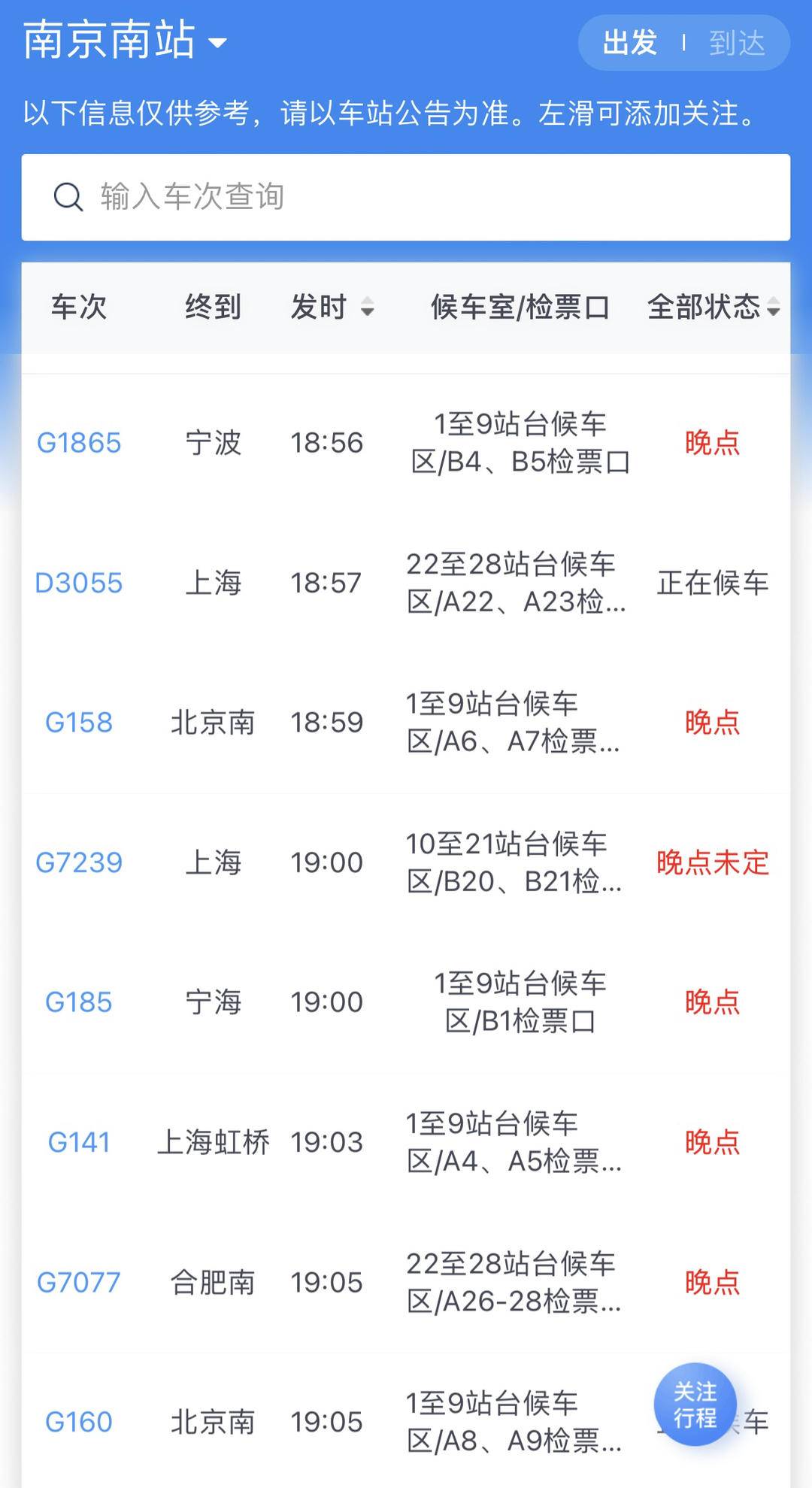 截至下午6时,记者查询发现,从南京前往上海、杭州、合肥、汉口等地的多条线路依然处于“晚点未定”的状态,广大旅客出行前,可以提前通过车站公告或致电12306客服热线查询相关列车的晚点情况,做好出行安排。