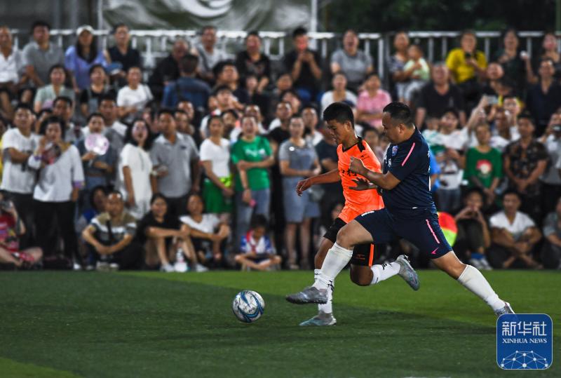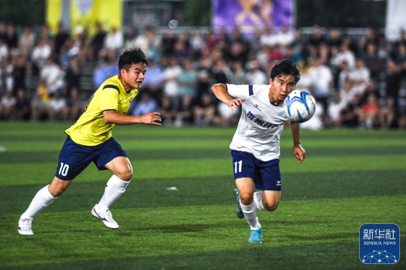 ↑6月9日,新中村足球队球员(左)与凤凰村足球队球员在比赛中拼抢。新华社记者杨文斌摄球员们拼命奔跑大汗淋漓身着传统服饰的村民们载歌载舞为球队欢呼加油