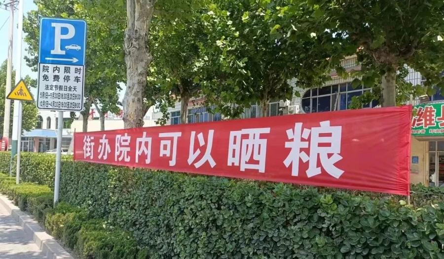 于河街道第一时间行动,向群众开放街道大院,同时组织各村开放村委大院、文化广场等村内空旷场地,为群众晒粮提供方便。