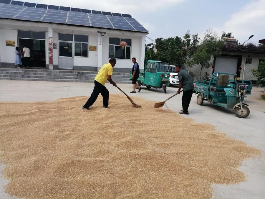 望留街道安排专人包靠,强化人员配备和技术保障工作,加强小麦防芽、防霉变技术指导,现场协调解决收割、晾晒过程中遇到的各类问题,并由街道办事处带头,组织开放各村村委办公场所、文化广场、空旷场地等公共区域,最大限度挖掘晾晒空间,协商晒粮场地,为群众晾晒小麦“腾地”。