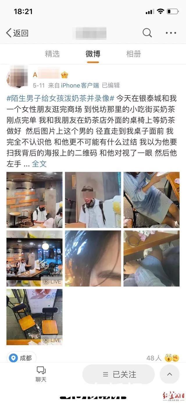 该事件一出,让不少网友表示,联想到了5月份“成都一女孩称被陌生男子用奶茶浇头”的新闻。