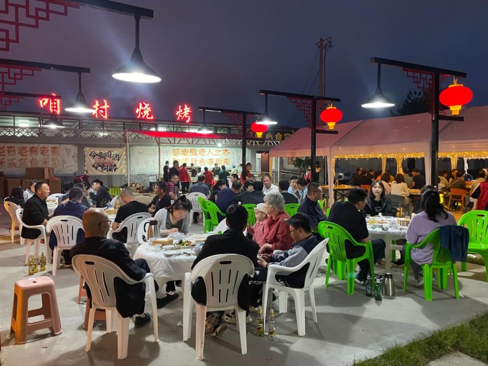 如何在当地众多的烧烤店里脱颖而出?又成了摆在宋知远面前的问题。由于没有经营烧烤店的经验,腾甲庄村聘请了专业的烧烤团队,从菜品搭配、服务流程等多个维度对志愿者进行培训,优化门店服务。同时,一改当地传统的屋内就餐形式,利用暖心食堂门前的空白区域,投资7万元,建设了一个露天烧烤广场,给食客提供一个全新的烧烤体验。