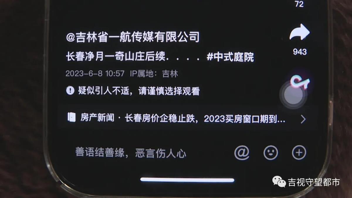 杨女士曾找过一名发布一奇山庄视频的博主,对方名叫“吉林省一航传媒有限公司”。她连线质问对方:“一奇山庄这个视频是谁拍的?”“请问一下你是怎么进去的呢?”