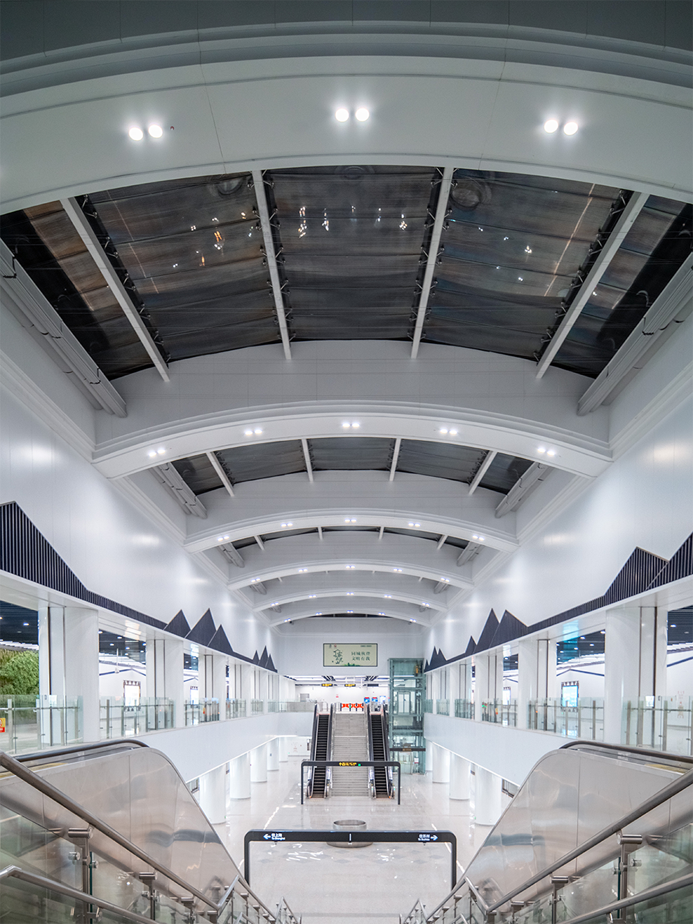 记者在现场看到,花桥站为地下一层、地上二层结构,在二层的换乘层,有三条连廊与上海地铁11号线花桥站相连接,试乘阶段开通了其中一条换乘通道。