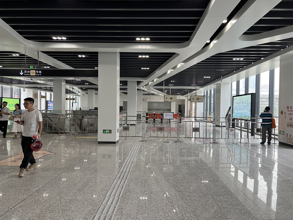 试乘阶段,乘客可免费乘坐苏州地铁11号线,记者进站后,过安检,不用检票,免费就进入了花桥站站台。