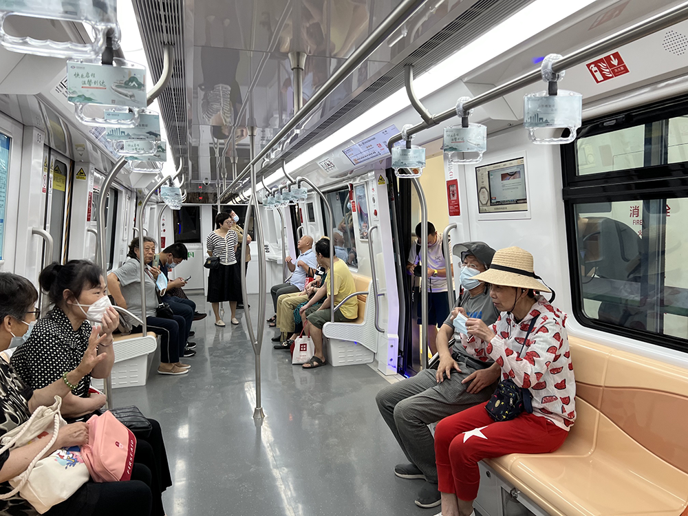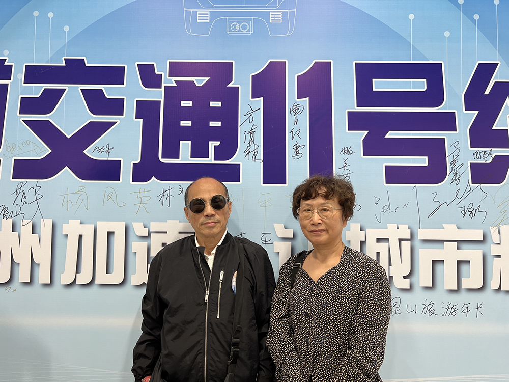 上海市民曹阿姨和方先生来试乘苏州地铁11号线
