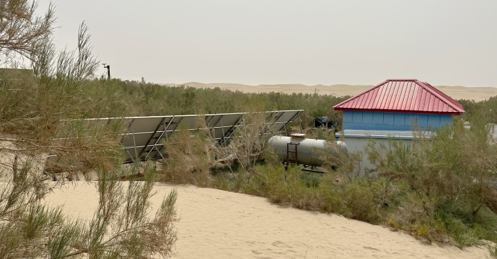 去年,水井房装了太阳能光伏发电设备,沙漠里竖起的两块大板子吸收阳光,向水井房输电。从此,夫妻俩的生活条件有了很大改善:终于24小时通电,公司也给他俩配上了空调、冰箱和电视机。尽管手机信号时有时无,好在电视信号稳定,生活也没有以前无聊了。