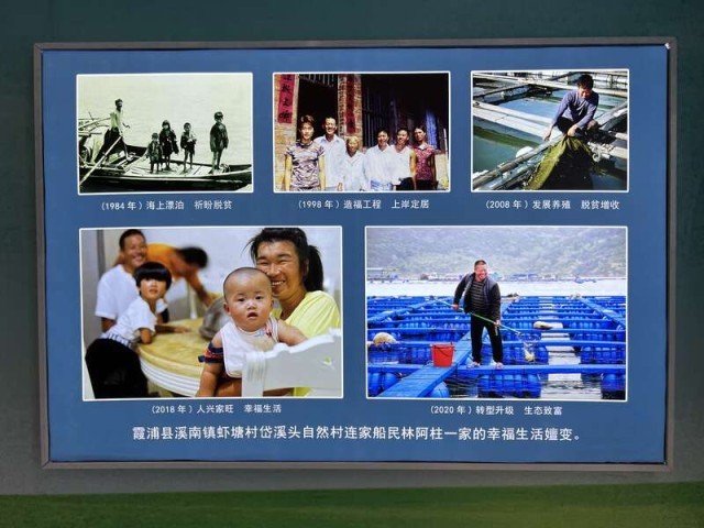 据解说员介绍,这组照片是当地记者每隔几年到霞浦县溪南镇虾塘村连家船民林阿柱家拍摄的。中青报·中青网记者田宏炜/摄