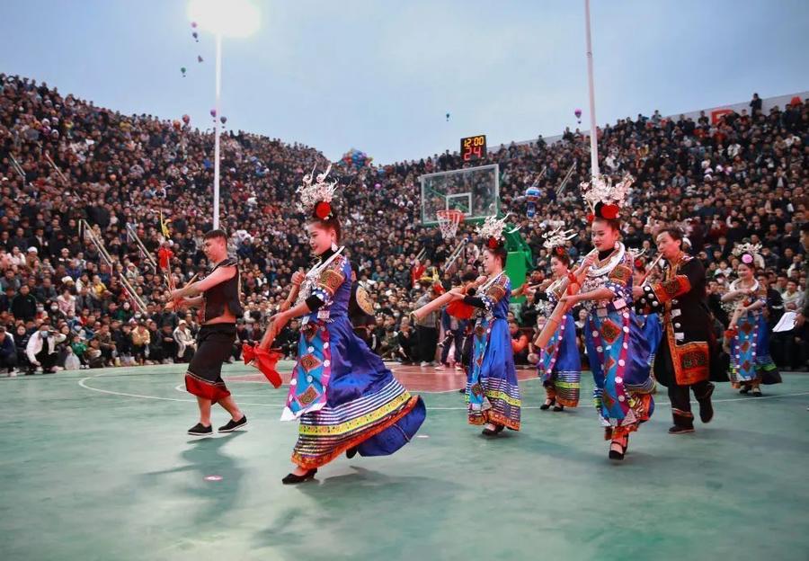 在黔东南苗族侗族自治州的东北部,村里90%以上的村民是苗族,每年苗族的“吃新节”,各个村庄都会举办篮球、斗牛、苗歌等比赛,祈求风调雨顺,五谷收获。其中坚持得最好、规模最大的要数台盘村,是唯一延续了几十年从不中断的地方,这让它成为十里八乡公认的“篮球赛举办地”。