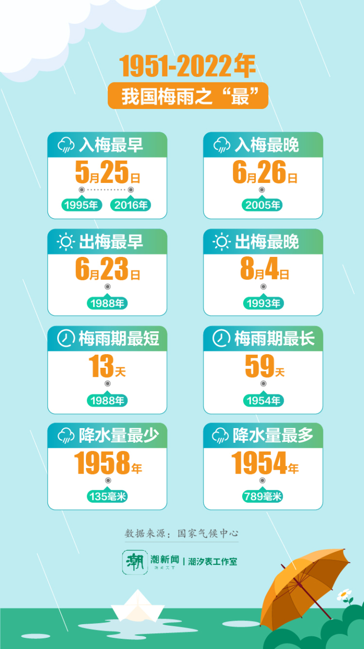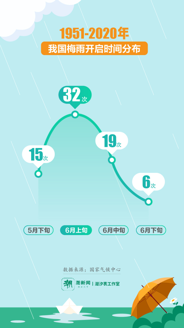 记者梳理了1951-2020年这70年的气象大数据发现,大多数年份的入梅时间都集中在6月中上旬。