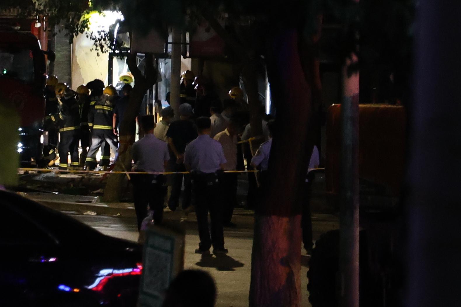 21日晚上11点20分,顶端新闻记者来到爆炸现场周边,附近路口已经实施交通管制,富洋烧烤周边50米左右已经拉起警戒线,现场有超过10辆救护车和数辆消防车。