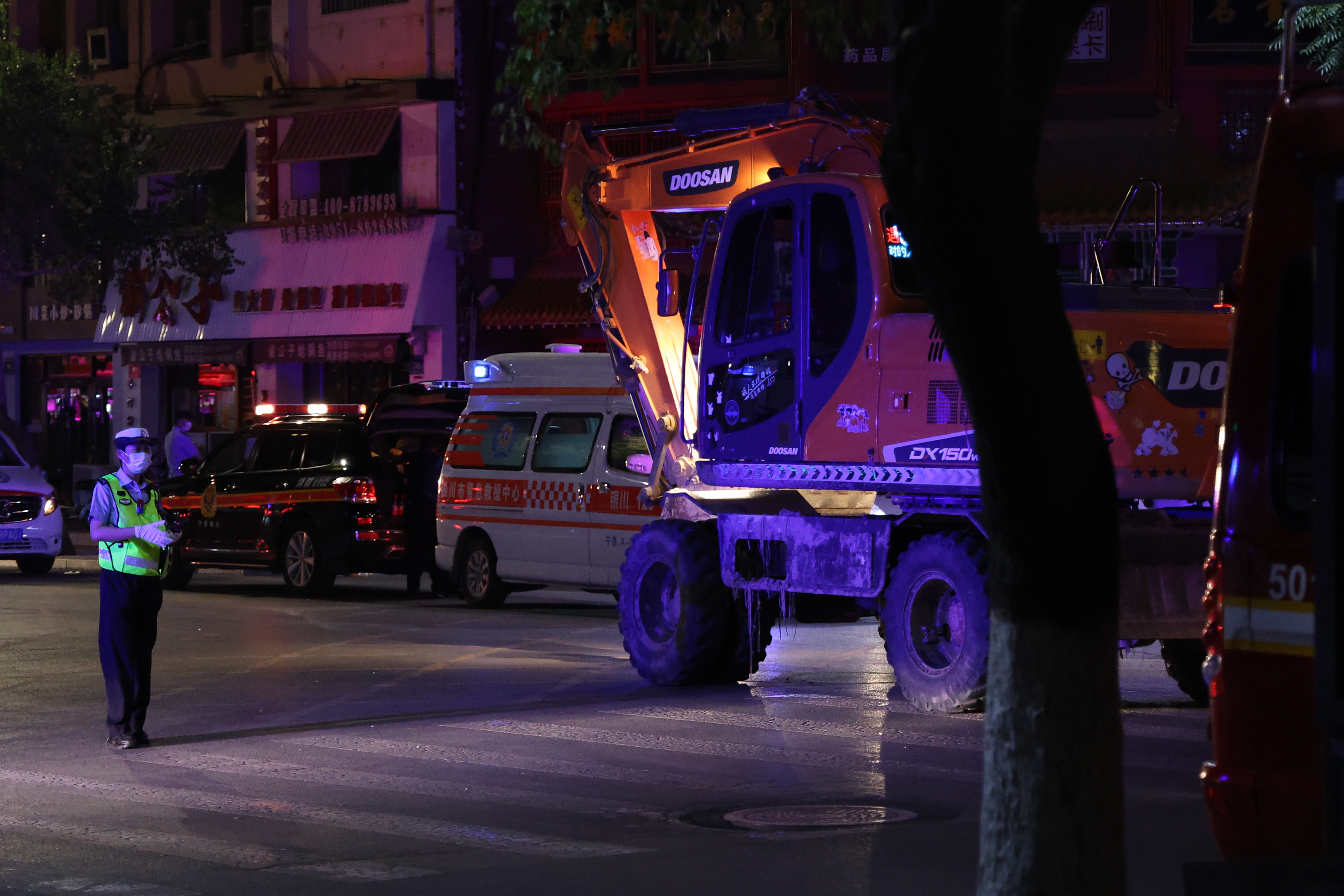 晚11点50分左右,有挖掘机进入爆炸现场。