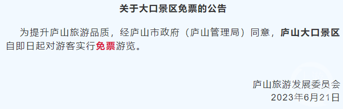 ▲庐山旅发委发布的大口景区免票公告。图片来源/网络截图