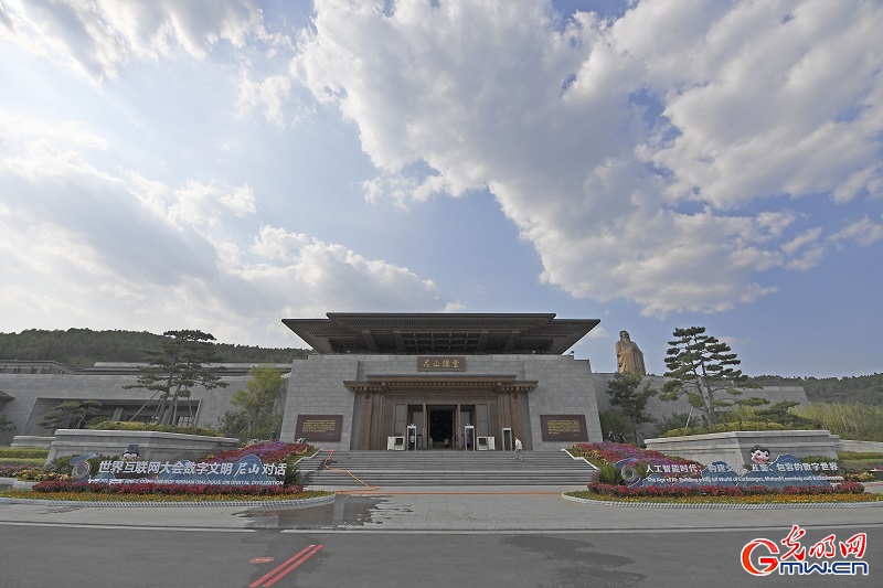 尼山讲堂会场外景观已基本搭建完成,静候会议开始。