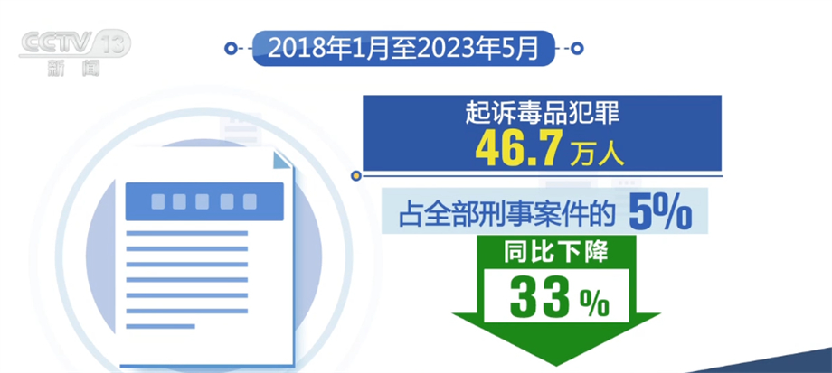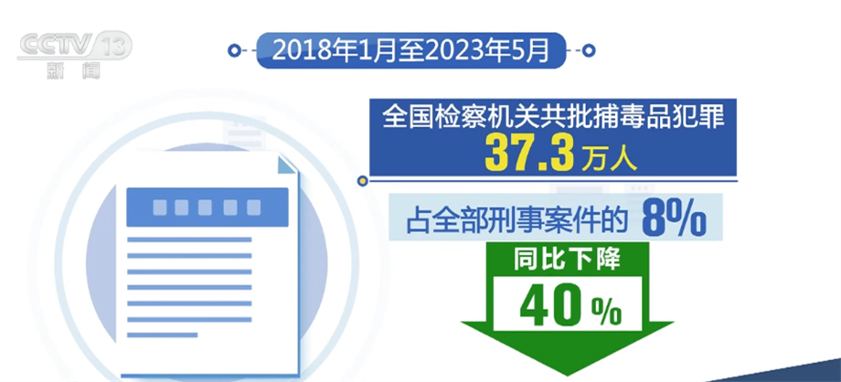 据介绍,2018年1月至2023年5月,全国检察机关共批捕毒品犯罪37.3万人,占全部刑事案件的8%,同比下降40%;起诉毒品犯罪46.7万人,占全部刑事案件的5%,同比下降33%。批捕起诉数据的下降,说明禁毒工作稳中有进、趋势向好、成效显现,毒品犯罪高发势头得到有效遏制。