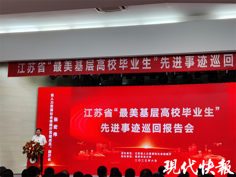 近年来,人社部在全国范围内组织开展“最美基层高校毕业生”宣传评选工作,每两年评选一次,共选出30名全国“最美基层高校毕业生”。江苏省委宣传部、省人社厅组织开展“江苏最美基层高校毕业生”宣传评选工作,共选出30名“江苏最美基层高校毕业生”。 省人社厅副厅长张宏伟在报告会上讲话,希望同学们志存高远、脚踏实地,以“最美基层高校毕业生”为榜样,勇于到基层实践锻炼,把专业理论知识与乡村振兴、企业生产紧密结合起来,在基层岗位上谱写人生的精彩华章。