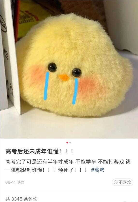 对于不少网友提出的“高考后还要被防沉迷”这一问题,最近官方也给出了正式回应,简而言之就是,只要未满18周岁,即使已经完成了人生大考,依然会被未成年人保护体系纳入保护范围,引得不少未成年的高三毕业生“一片哀嚎”。