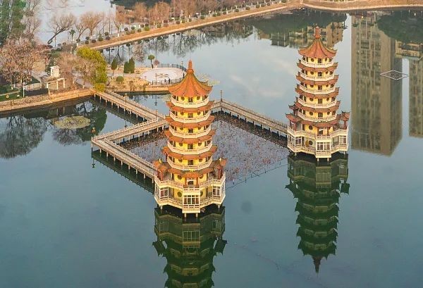 除了道路名字,其实这里还有很多和台湾省相关的社区。宝岛社区、高雄社区、和美社区、桃源里、澎湖公寓,还有一个宝岛公园。宝岛公园是参照台湾省高雄建筑模式建造的。公园湖心岛上的“龙虎塔”,也以台湾省高雄市的“龙虎塔”为原型仿造而成。还有网友说,公园里的湖心岛形似缩小版的台湾岛。