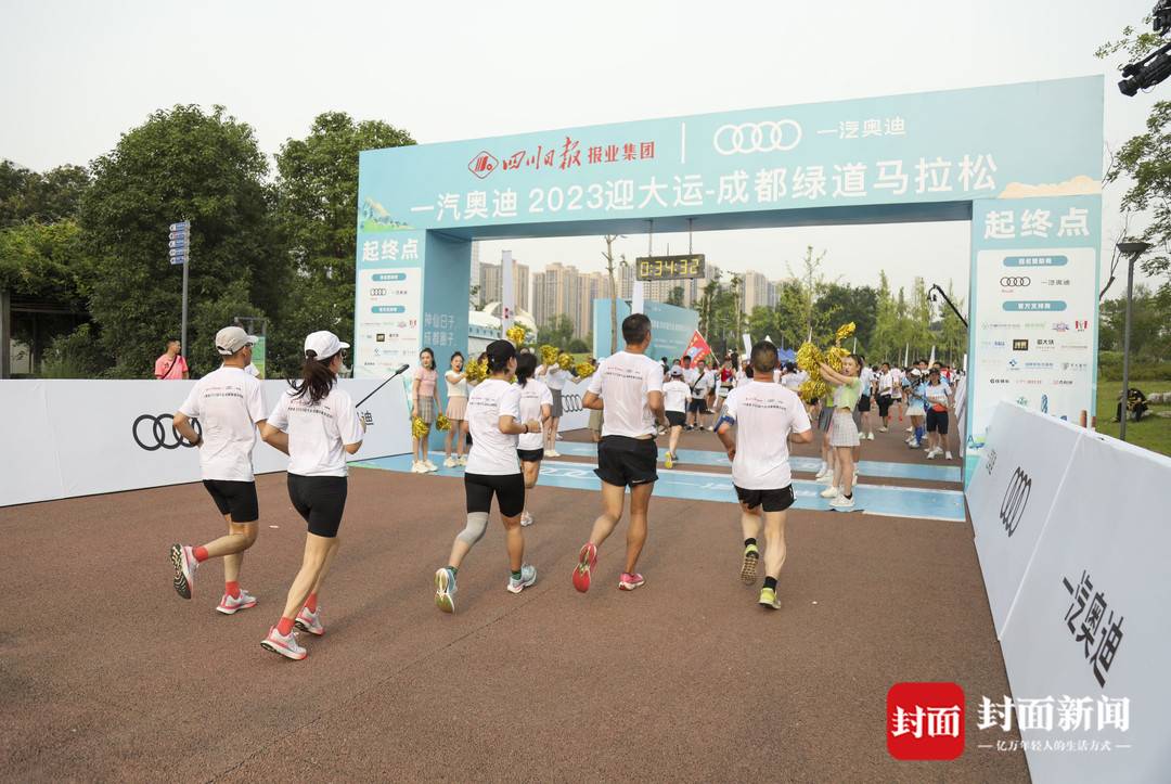 7月2日上午7:30,由四川日报报业集团主办,成都天府绿道文化旅游发展集团股份有限公司协办,四川封面传媒科技有限责任公司承办的“一汽奥迪2023迎大运-成都绿道马拉松”活动在桂溪生态公园西区鸣枪起跑,为迎大运加油助威,多位川籍奥运冠军现场助力绿道马拉松。