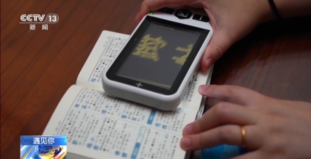 韩瑶:这些都是我从小到大用来读书写字的工具,像我们看到的这个就是我们传统的盲文板和盲文笔,随着我的成长我发现了这样一种工具,就是光学的助视器。我就是用这样的一个助视器去抄写的《新华字典》。