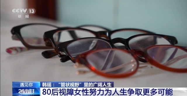 韩瑶是个80后,来自辽宁沈阳。1987年出生的她,自出生起就患有视网膜色素变性,此后视力不断下降,现在,她的视野半径小于0.5度,视力只有0.01,就像通过一根手指粗细的“管子”,窥见有光亮的世界。