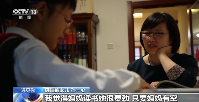 韩瑶的女儿孙一心:我觉得妈妈读书她很费劲,只要妈妈有空,我就会腾出一些时间去给她读书。