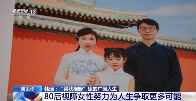 大学毕业后,韩瑶在一个公益组织里结识了同为视障人士的孙志远,两人相知相爱,之后组建了家庭。2012年,他们有了一个视力健康的女儿。