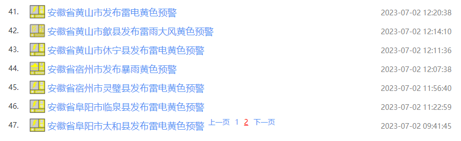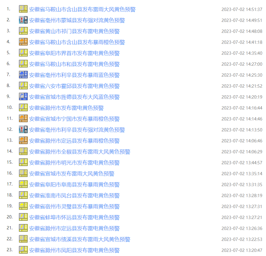 截至发稿前,安徽发布气象灾害警报与预警信号47个。