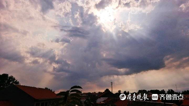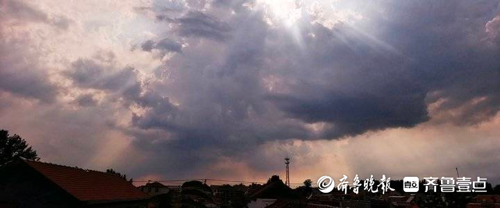 7月8日下午,青岛北郊黑云滚滚,轰隆隆的雷雨随之而来。雷雨云景变化莫测,天空光线更是绚丽多彩。大雨过后,酷热的天气顿时凉爽了很多。