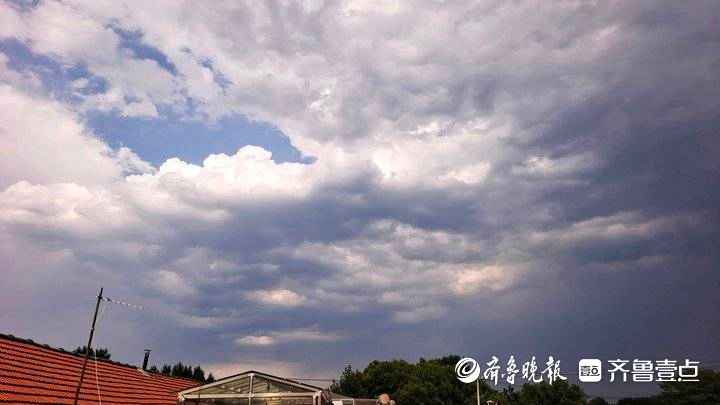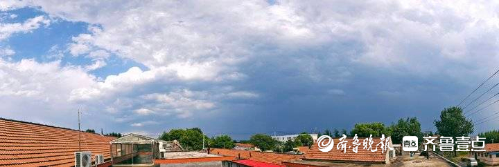 青岛北郊出现壮观雷雨云,光影变幻莫测
