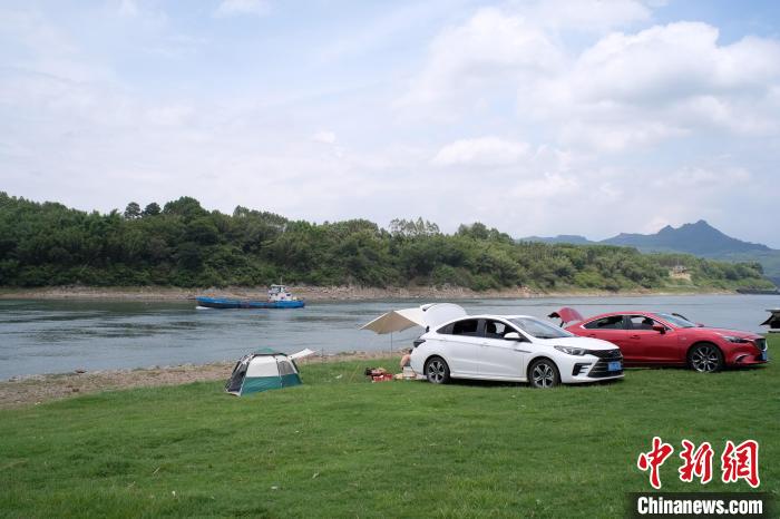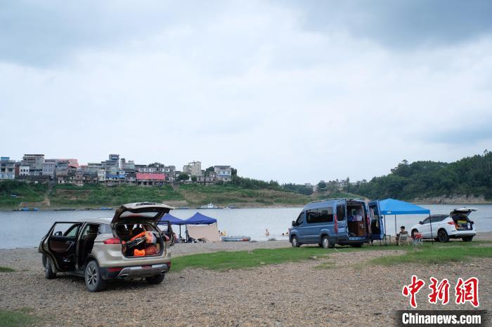 7月8日,在广西柳州市鱼峰区白沙古镇,不少游客来此旅游避暑,在江边露营烧烤。始建于清朝时期的白沙古镇,曾是繁华热闹的古商埠。如今,经过对古镇老建筑的修缮,并打造老码头露营基地,这座古镇焕发新的生机,吸引不少民众前来“打卡”。