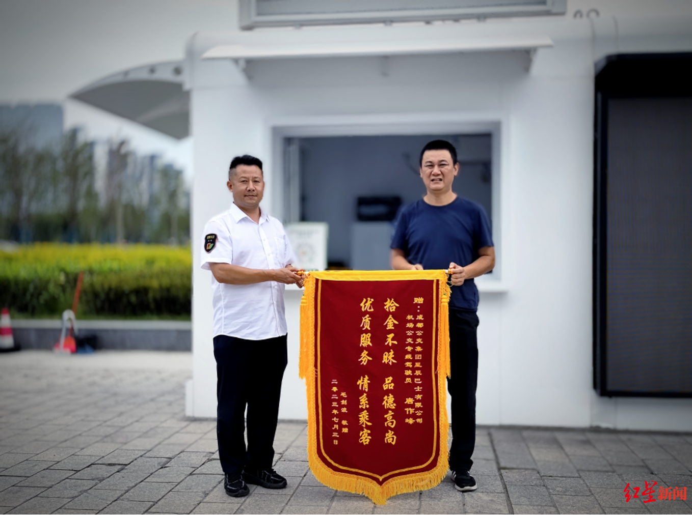 7月6日下午,毛先生来到环球中心机场专线乘车点位拿到了遗失的物品,他十分感动,特送上锦旗表示感谢。毛先生表示:“机场专线的开行极大方便了我们凌晨前往天府国际机场,驾驶员师傅和工作人员的热心服务也让我很感动,我真的没想到钱包这么快就可以找到。”
