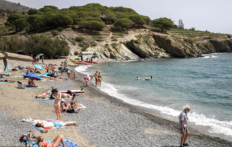 当地时间2023年7月11日,法国滨海阿热莱斯,游客们在享受海滩。